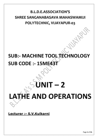 Machine Tools Operationss Notes S J P N Trust S Hirasugar Institute Of Technology Nidasoshi Studocu